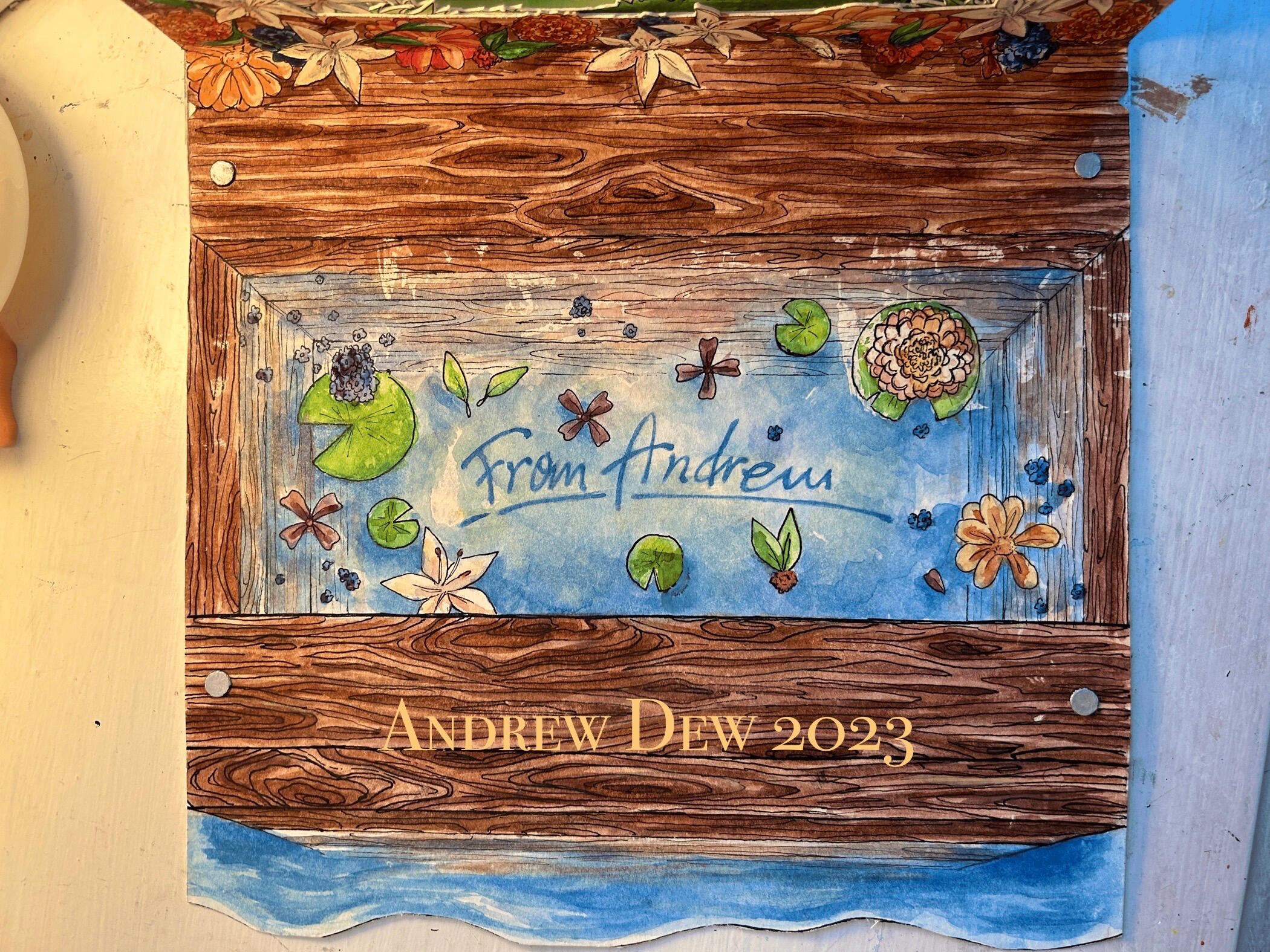 Pop-up thank you card [Front], Painted in watercolor; inked with dip pen; constructed with superglue, AP Art Portfolio Selected Work - 2023